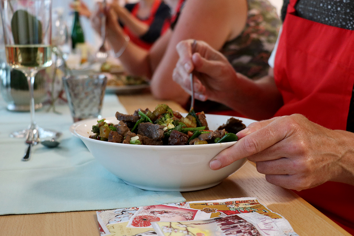 Wir starten mit einem Begrüßungsgetränk, verbringen Sie bei uns gemütliche Stunden mit vielen tollen Menschen aus der Region und bereiten gemeinsam ein 3- bis 4- Gänge-Menü vor, welches Sie danach zusammen mit einem Glas Wein genießen können.