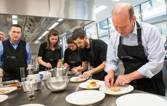 Es steht kein bloßes Zuschauen auf dem Programm, sondern aktives, gemeinsames Kreieren unter den lehrreichen Anweisungen der Profis.Ziel ist es, ambitionierten Hobbyköchen die Kunst der Zubereitung und Darbietung noch näher zu bringen.