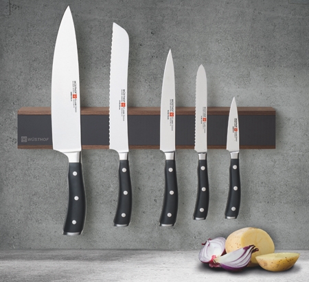 Alternativ zu einem Messerblock können Sie auch Magnetleisten in Ihrer Küche zur Aufbewahrung nutzen. Mithilfe von zwei besonders starken Magneten werden Ihre Messer sicher gehalten. Magnetleisten sind vor allem in kleinen Küchen zu empfehlen, da sie sehr platzsparend sind. Sie sind aus Holz, Kunststoff oder auch Aluminium erhältlich.