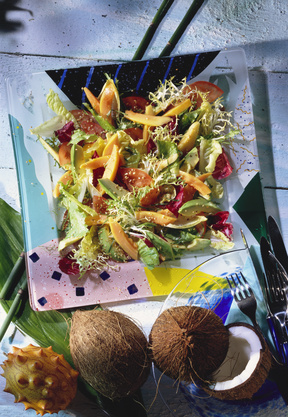 Trotz ihrer Vielseitigkeit weist die karibische Küche auch einige kulinarische Gemeinsamkeiten auf. Aufgrund der Nähe zum Meer spielen Fisch und Meeresfrüchte hier eine große Rolle. Ob Muscheln, Krabben, Schnecken, Seeigel, Schwertfisch, Dorade oder Red Snapper, ob gebraten, gegrillt, gedünstet oder gekocht die karibische Küche ist ein wahres El Dorado für Liebhaber von Fisch und Meeresfrüchten. Außerdem ist die Verwendung von Gewürzen sehr beliebt, denn ohne diese läuft in dieser Küche nichts. Demzufolge werden unter anderem Chili, Piment, Zimt, Curry, Kurkuma, Koriander oder landestypische Gewürzmischungen intensiv eingesetzt und verleihen den Gerichten oft ihr spezifisches Aroma. Als Beilagen werden vor allem Reis, Bohnen, Süßkartoffeln, Kochbananen, Brotfrucht, Maniok, Yamswurzel, Okraschoten oder das spinatähnliche Blatt Callaloo gereicht. Und auch das Angebot an heimischen Früchten ist in der Karibik immens. Neben uns bekannten Obstsorten, wie Ananas, Bananen, Limetten, Mangos, Kokosnüssen, Avocado, Papaya und Melonen stehen in der Karibik auch weitere Exoten auf dem Speiseplan. So werden hier beispielsweise aus Guaven, Guanabana, Cherimoya und Ackees raffinierte Rezepte gezaubert.