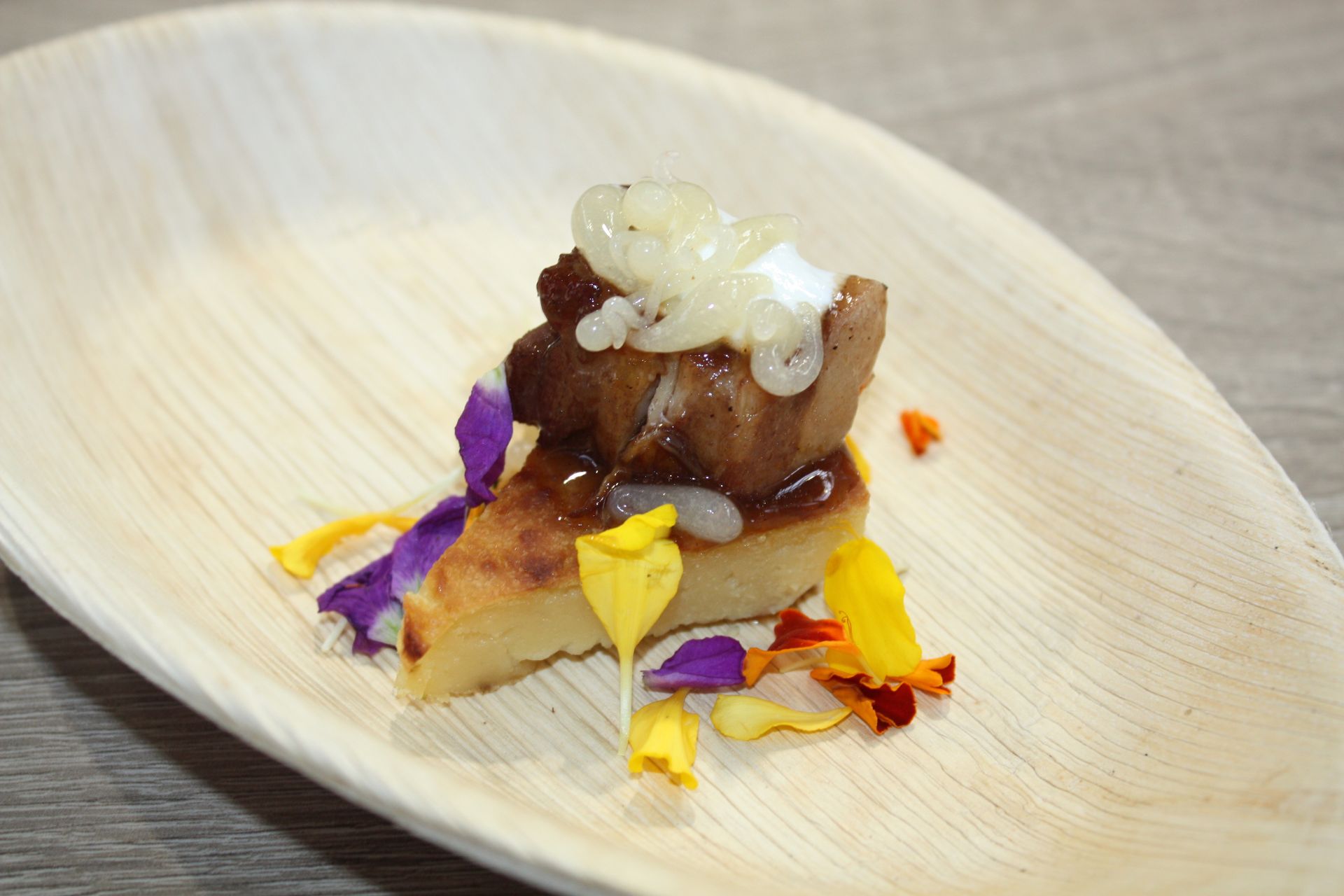 Wer auf dem nächsten Geburtstag oder der nächsten Familienfeier nicht mit einem klassischen Nudelsalat glänzen möchte, sondern etwas Besonderes zubereiten will, dem empfehlen wir dieses Fingerfood-Rezept der Tafelkünstler Kochschule Kev’s Kitchen: zartes Spanferkelfleisch mit Birnenkaviar und einem Topinambur-Grain.